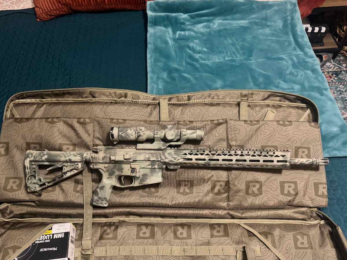 I have a Live Free Armory 308 Hunter AR10. All factory except an extended ambi charging handle. Has an illuminated Vortex Strike Eagle LPVO (1-8x, SFP). Comes with 3 mags, and a handful of mixed (.308/7.62) ammo. I’m the only owner, has about 100 rounds through it. Factory FDE Cerakote under the paint. Paint can easily be removed.